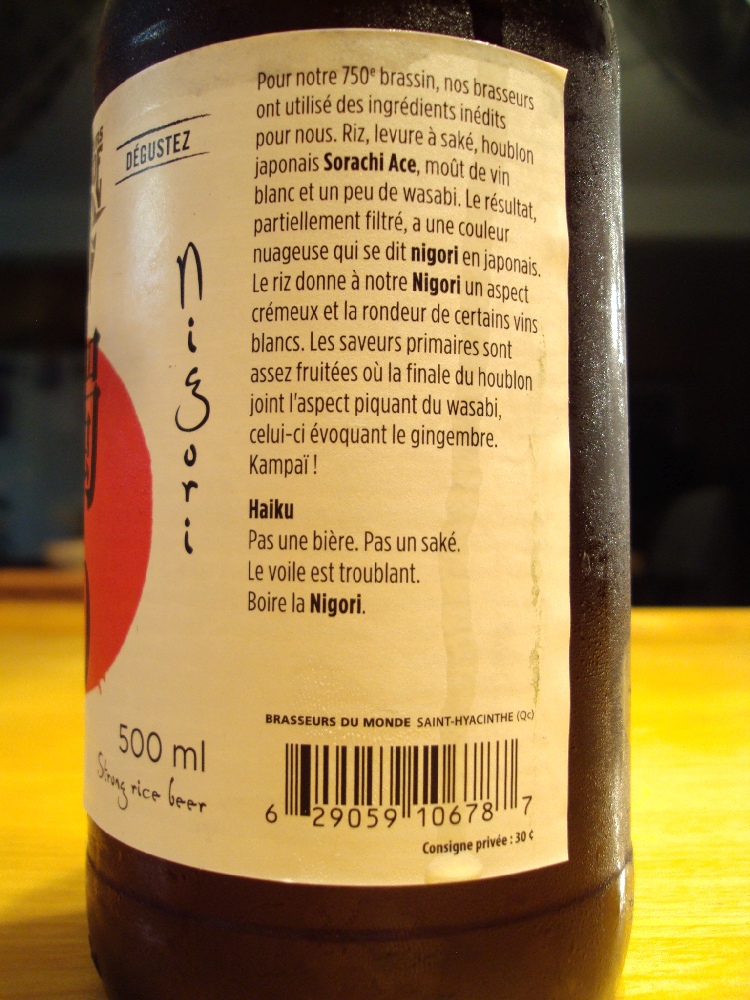 Nigori Brasseurs Du Monde – bouteille side a – craftbeerquebec.ca